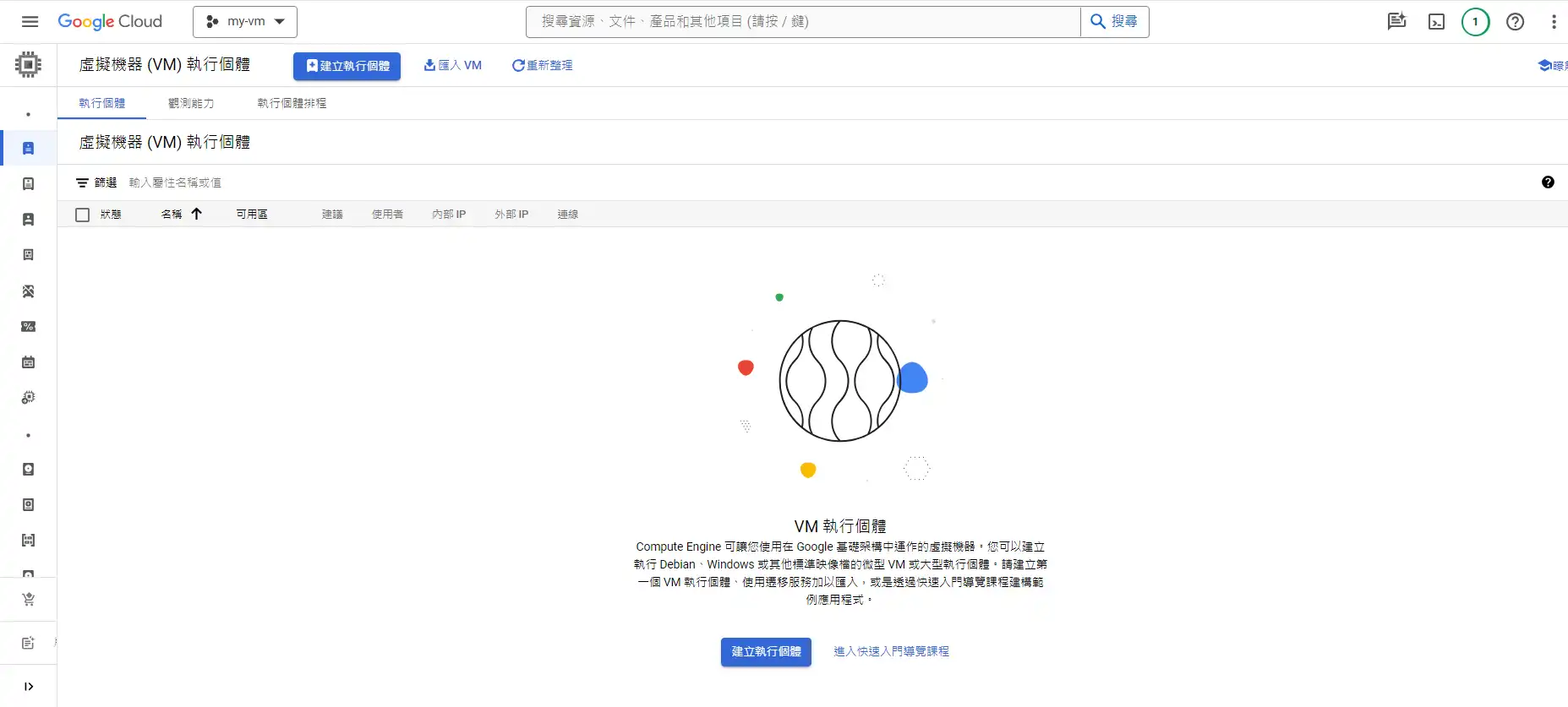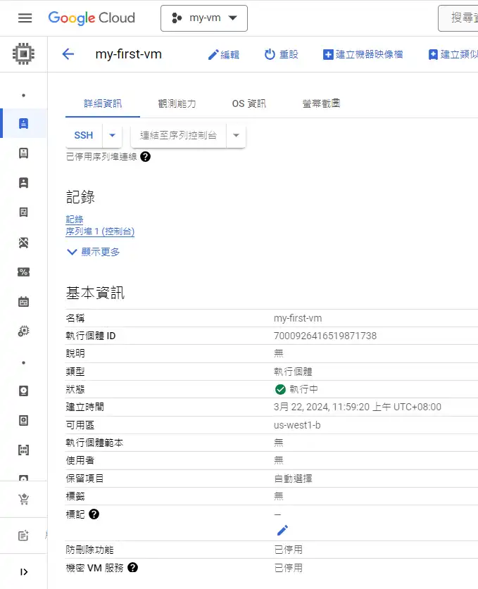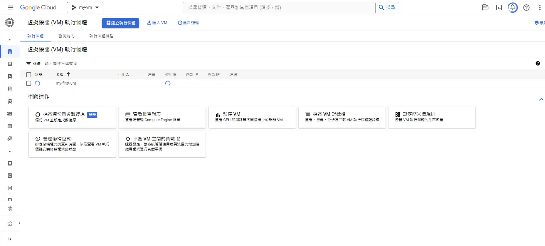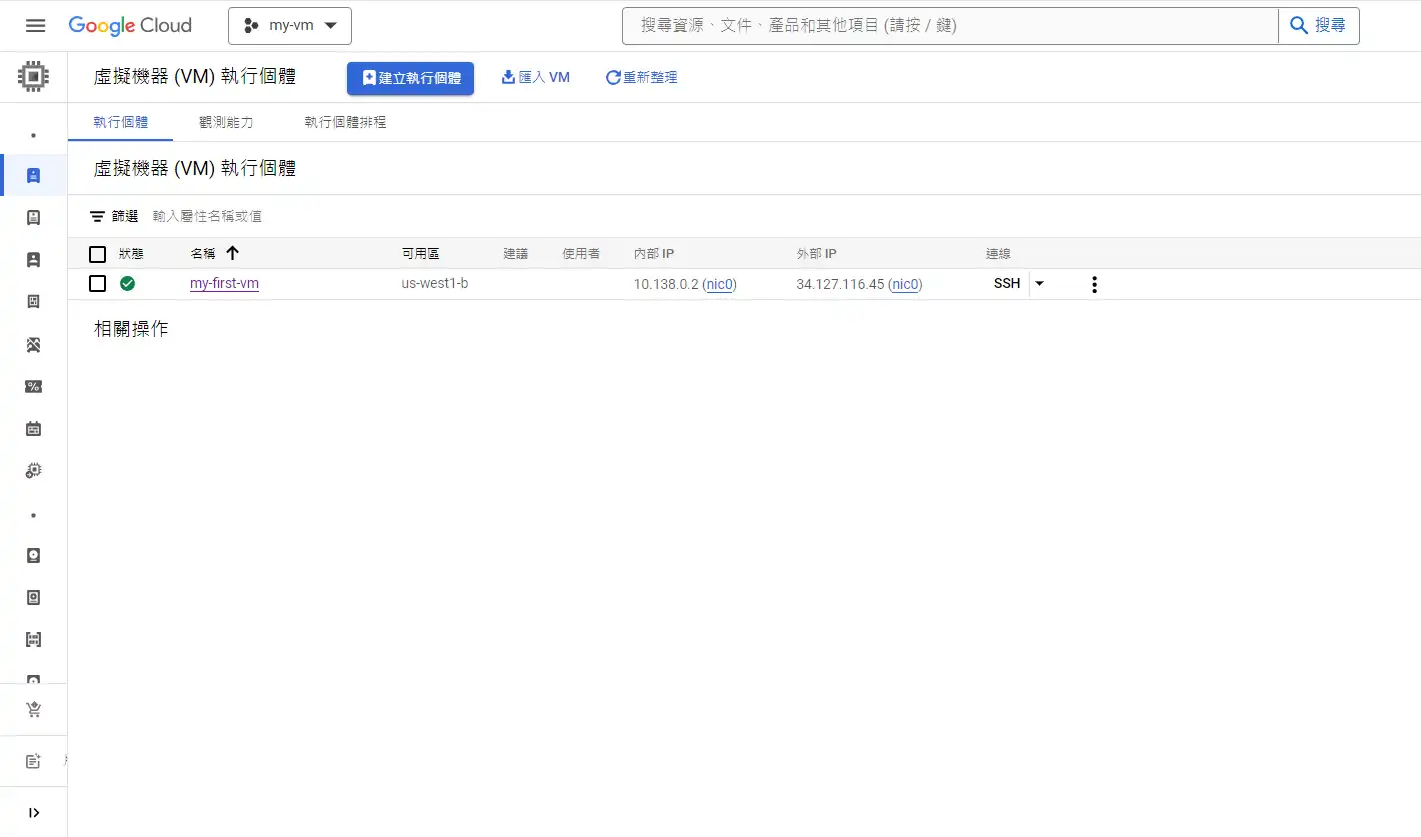 選擇compute engine -> VM執行個體