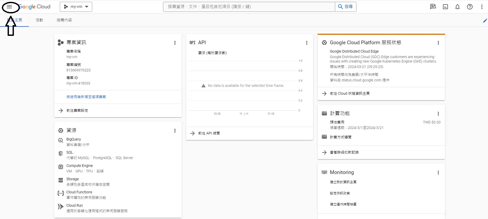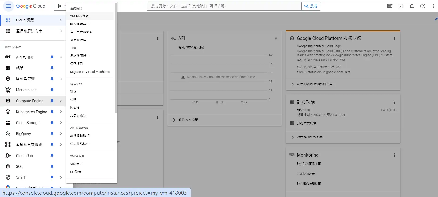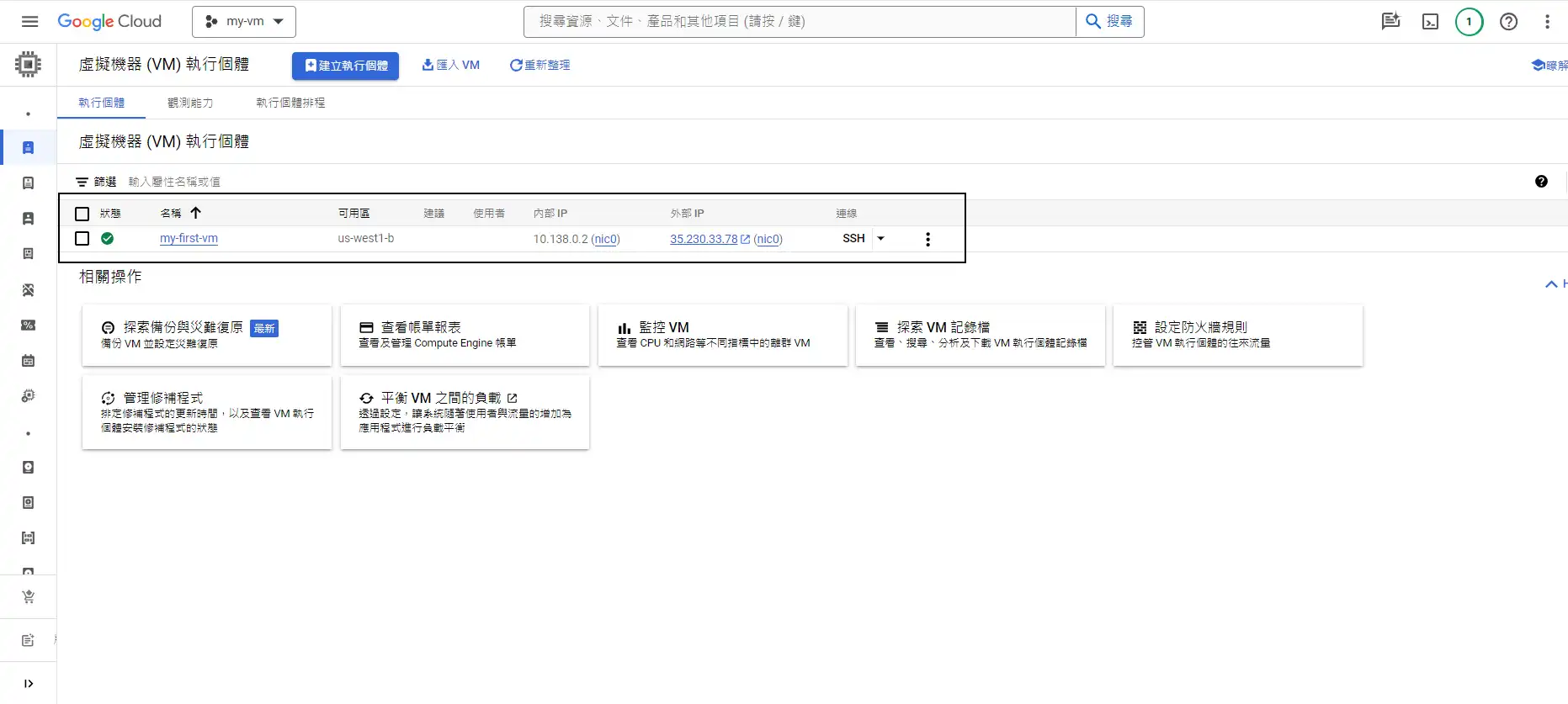 選擇compute engine -> VM執行個體