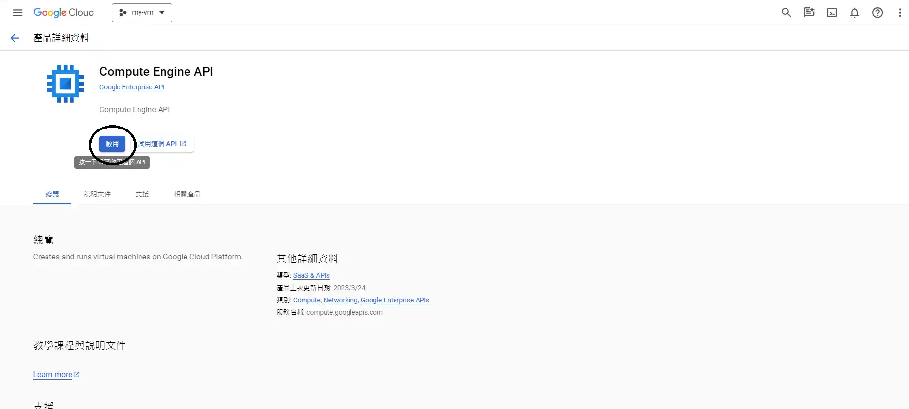 會需要啟用comput engine API,點選啟用,這裡需要等一下子